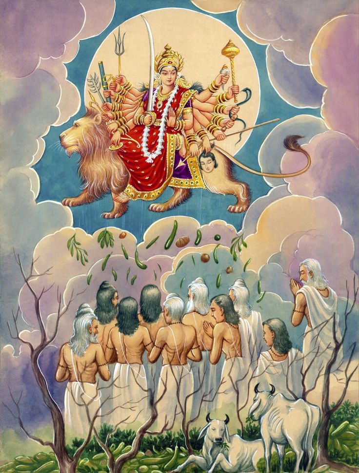 Legend tells of a time when humanity suffered famine. The Goddess manifested with countless eyes—each a symbol of care and awareness—through which she nurtured the earth with food and greenery. While the name literally means "hundred eyes," the stories describe her with hundreds or even thousands of eyes, representing infinite perception and protection.
