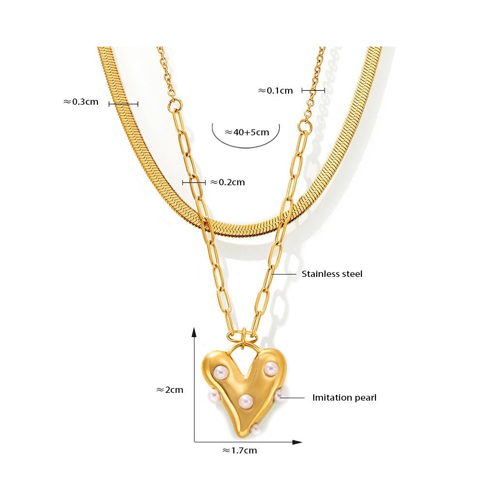 Radiant, bold, and irresistibly romantic — The Amora Heart Necklace is a love letter in gold. Handcrafted in 316L stainless steel with rich 18k PVD plating, it features a sculpted heart pendant adorned with luminous pearls, suspended from a dual-chain design. The contrast of fluid curves and structured links creates a look that’s both modern and tender — like love itself.