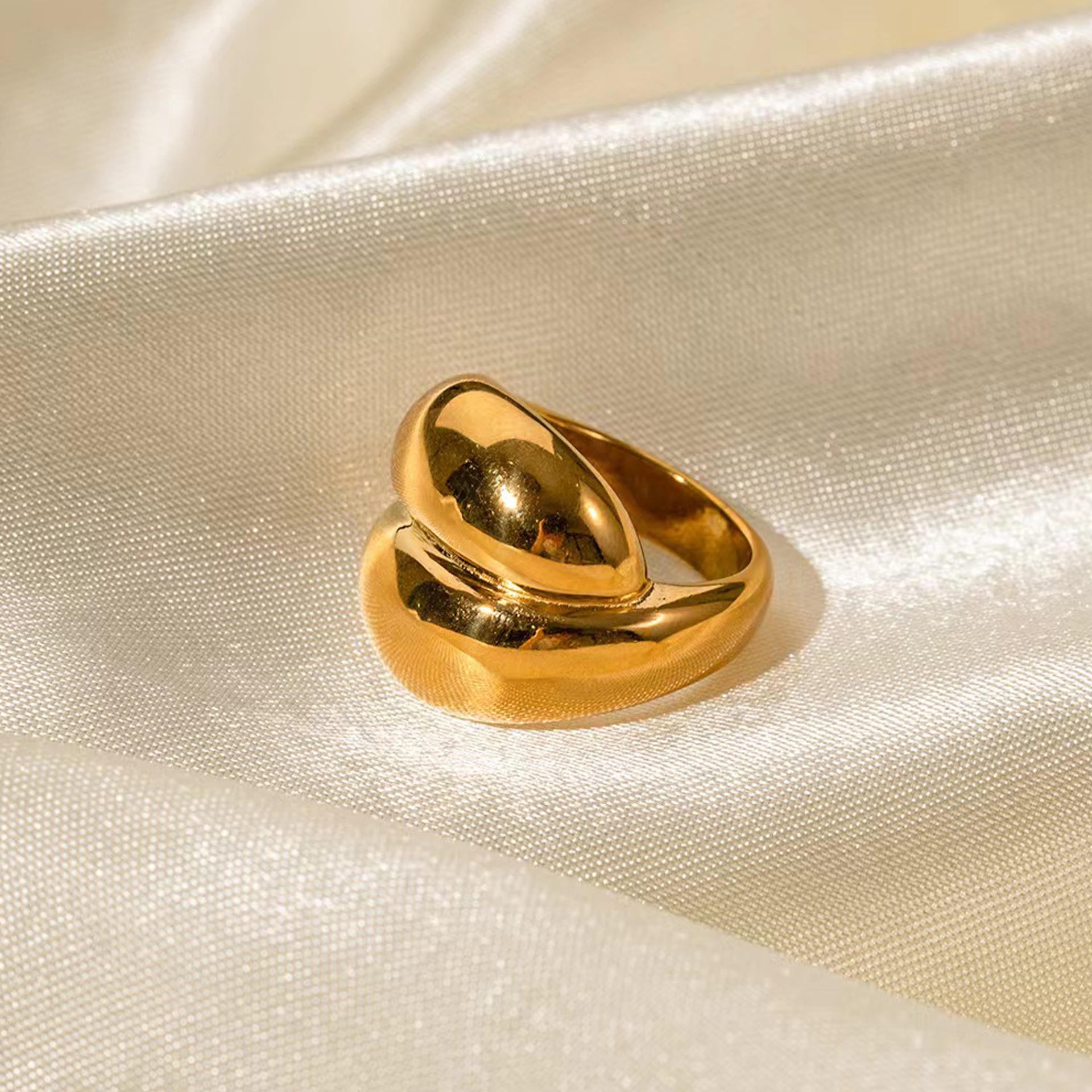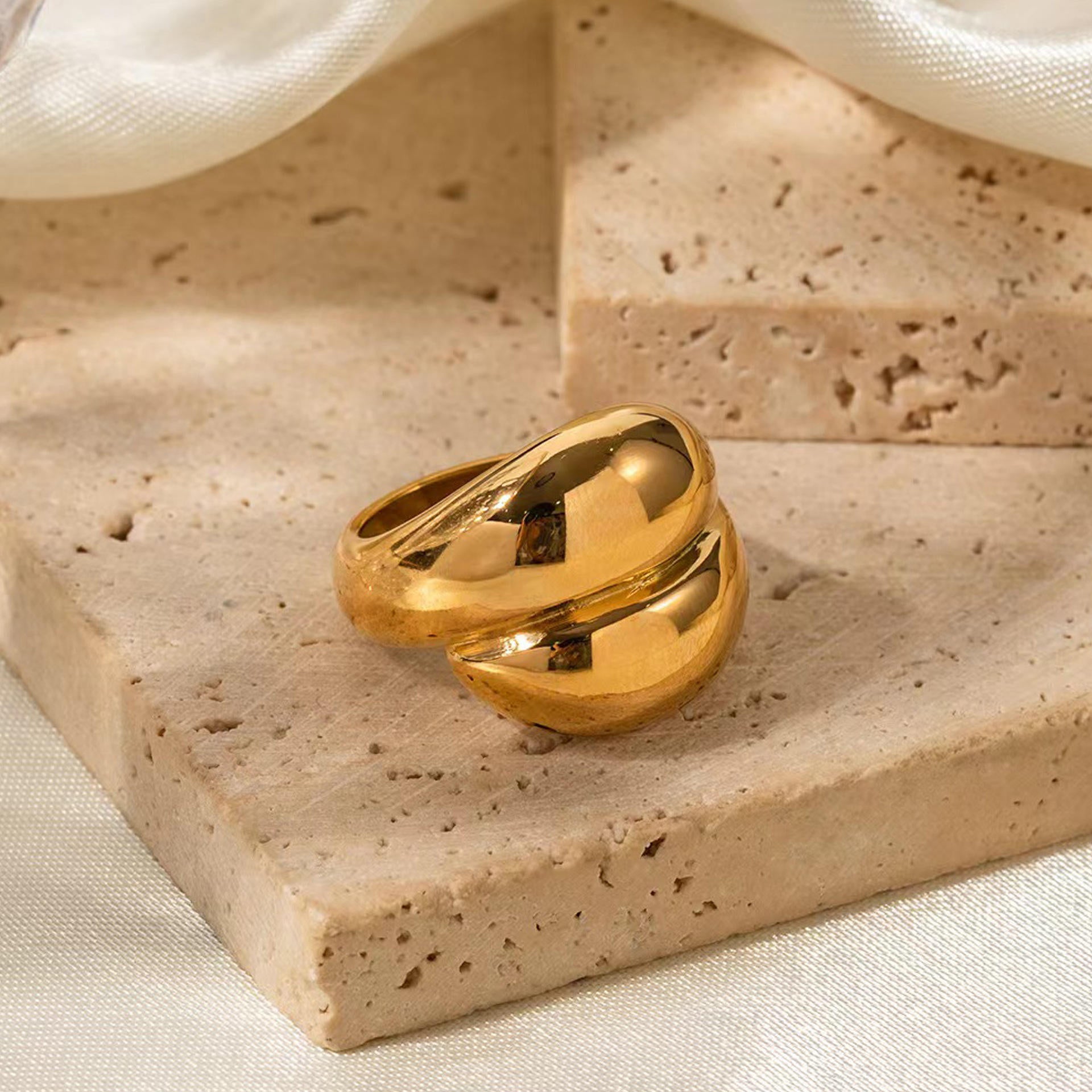 Wear it solo on your index or middle finger to let the sculptural form stand out. Pair with minimal gold studs or sleek cuffs for a polished daytime look, or elevate evening outfits with a monochrome black or ivory ensemble to enhance its reflective gold finish.