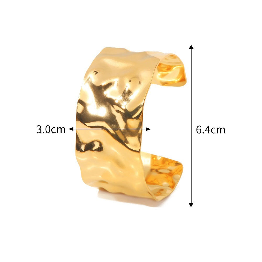 Bold yet beautifully fluid — The Aurora Cuff draws inspiration from sculptural art and organic movement. Crafted from 316L stainless steel with a lustrous 18k PVD gold finish, its rippled surface reflects light like molten gold. This statement piece embodies modern artistry and timeless confidence, designed for the woman who wears elegance effortlessly.