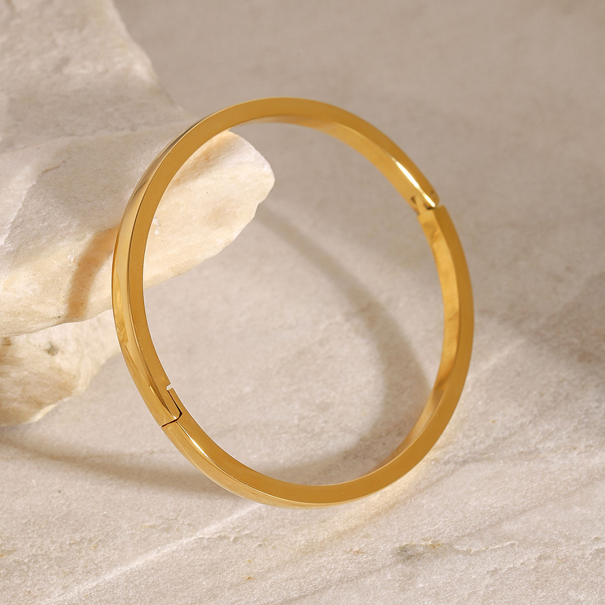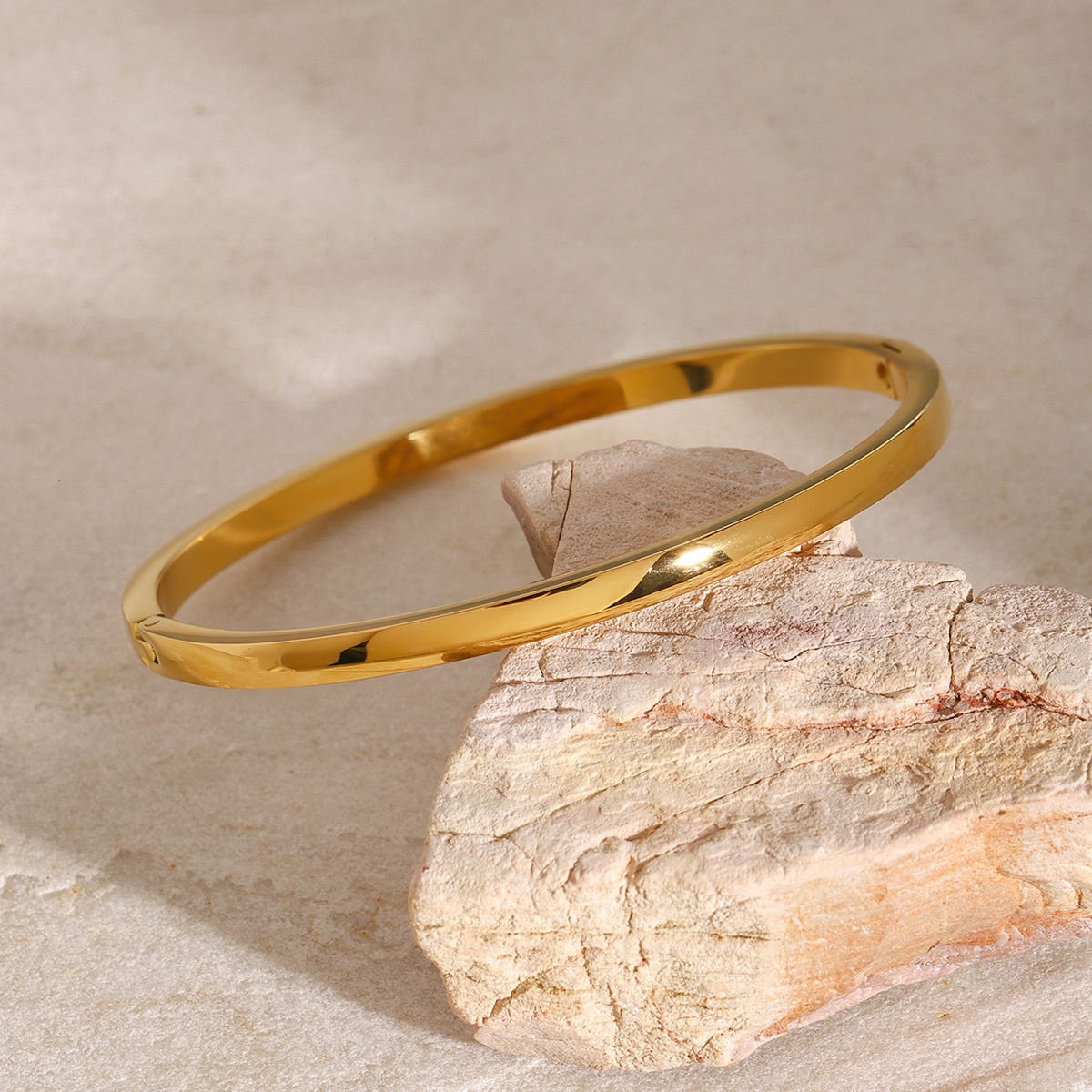 Minimalism, perfected. The Elara Bangle captures quiet strength through clean lines and a flawless mirror-polished finish. Crafted from premium 316L stainless steel and coated with 18k PVD gold, this timeless piece embodies effortless sophistication — versatile enough for everyday wear yet refined for evening allure.