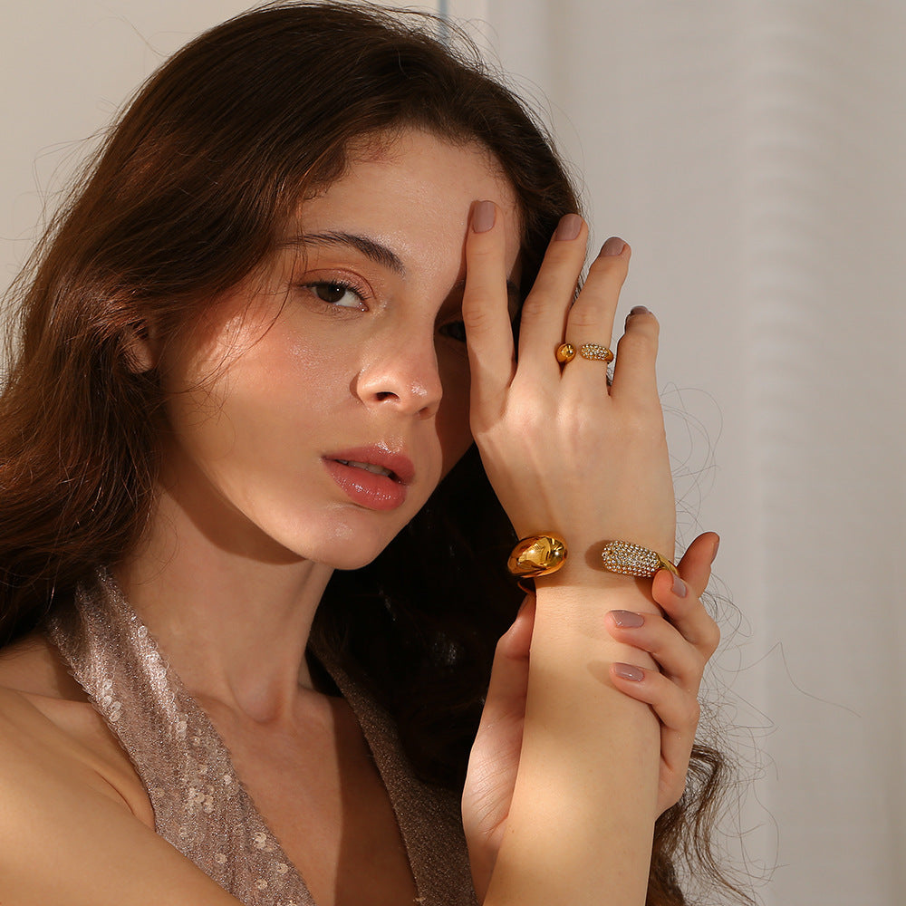 The Lustra Cuff embodies the essence of luminous strength. Its fluid silhouette flows into a pavé-set tip that captures light from every angle, creating a balance between structure and sparkle. Designed for the woman who carries quiet power, this cuff transitions effortlessly from day to soirée — timeless, radiant, and unapologetically refined.