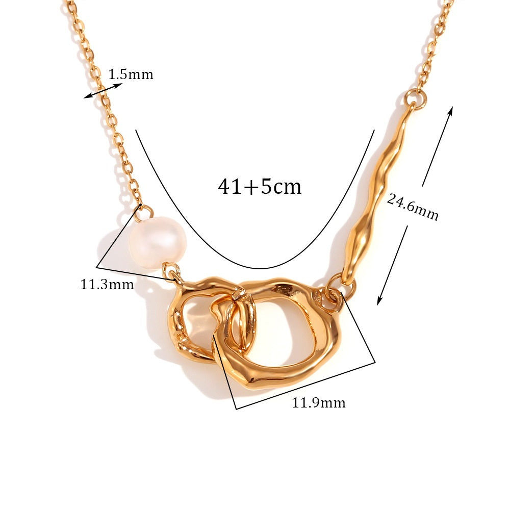 The Oro Mélange Necklace embodies the poetry of imperfection. Its asymmetrical gold loops flow seamlessly into a natural freshwater pearl, capturing the balance between structure and spontaneity. Crafted from 316L stainless steel with 18K PVD gold plating, this piece radiates quiet strength and timeless artistry — a statement that feels effortless yet intentional.