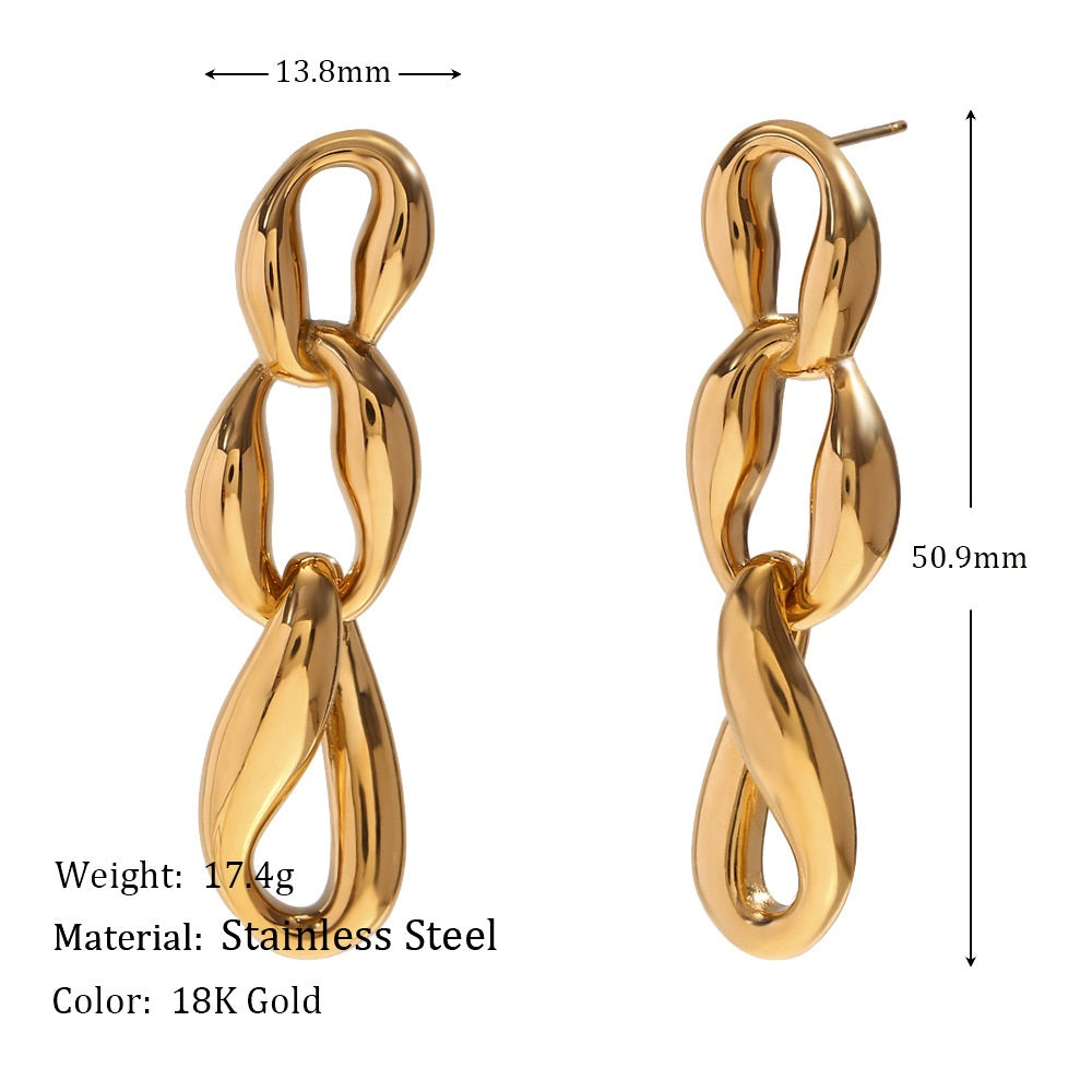 Bold yet fluid, The Riviera Link Earrings reimagine the classic chain silhouette with sculptural elegance. Crafted from 316L stainless steel and finished in high-shine 18k PVD gold, each interlinked form reflects light with effortless grace. Their elongated design adds movement and sophistication — a refined statement that never overwhelms.