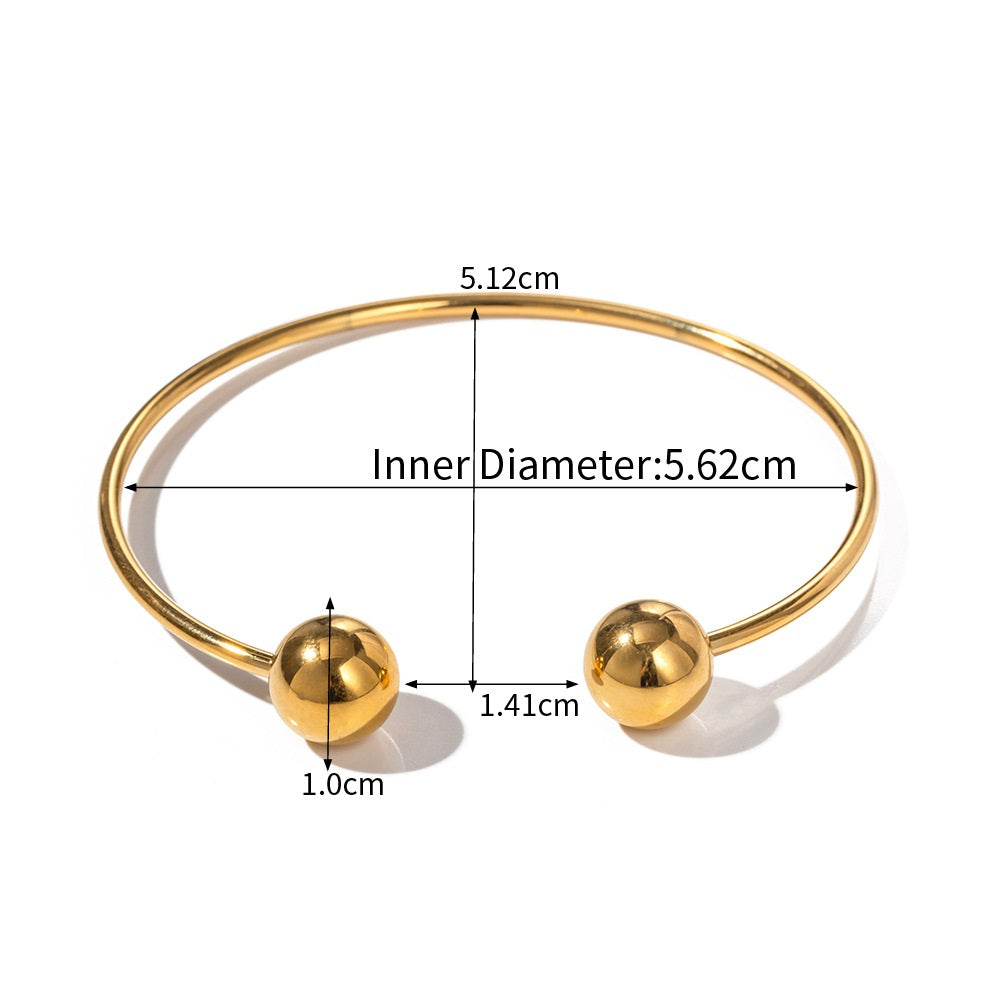 Effortlessly modern yet timelessly refined — The Sphere Cuff features a minimalist open design adorned with two polished spheres. Crafted from 316L stainless steel and finished in rich 18k PVD gold, this piece captures the essence of understated luxury. Its fluid silhouette makes it both versatile and enduring — a quiet statement of sophistication.