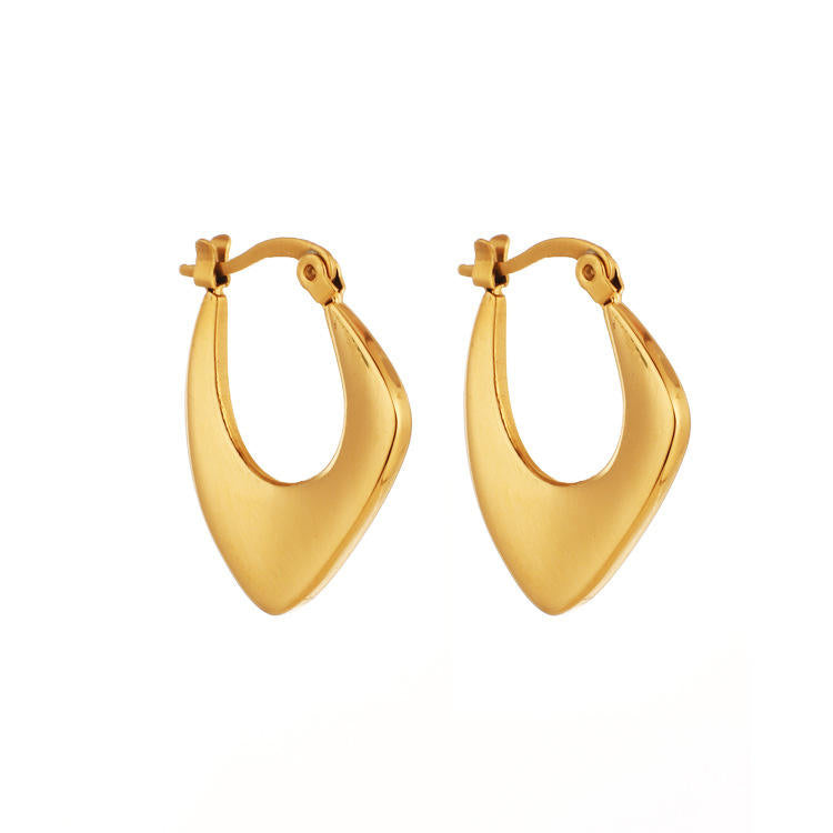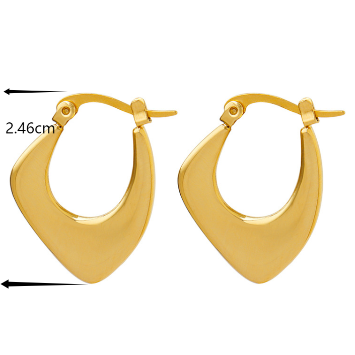 Sculptural and sleek, The Solara Hoops are a modern take on classic gold earrings. Crafted from 316L stainless steel and coated in radiant 18k PVD gold, their fluid, pointed silhouette adds a touch of refined edge to any look. Designed for versatility, they balance bold form with a minimal, sunlit glow — effortless sophistication in every curve.